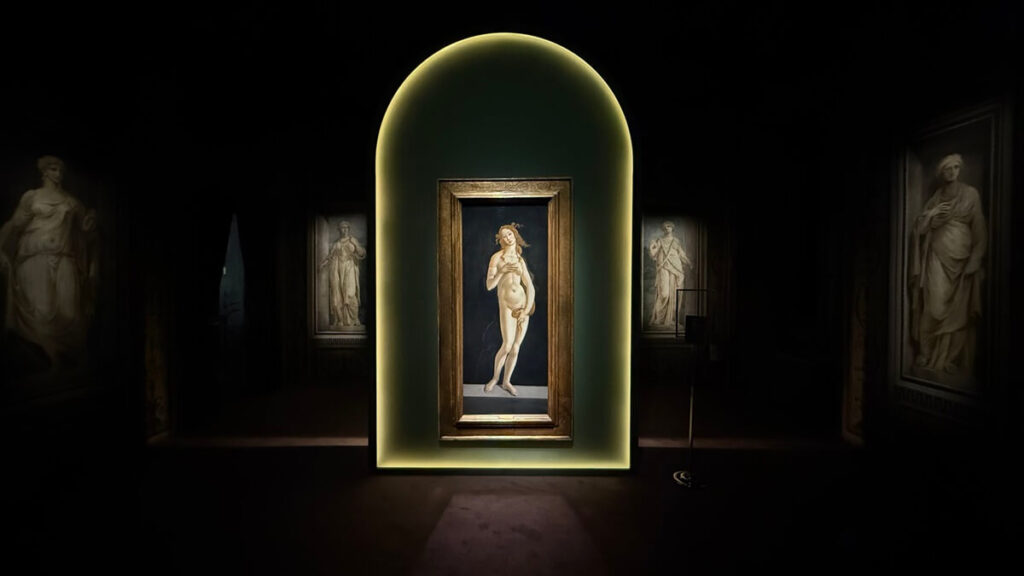 The guest of honor is Botticelli’s Venus, one of the most celebrated Renaissance works exalting feminine beauty, exceptionally loaned by the Musei Reali – Galleria Sabauda in Turin. The piece reveals a striking throughline with Mucha’s linear, graceful yet powerful figures, underscoring how art is cyclical and timeless.