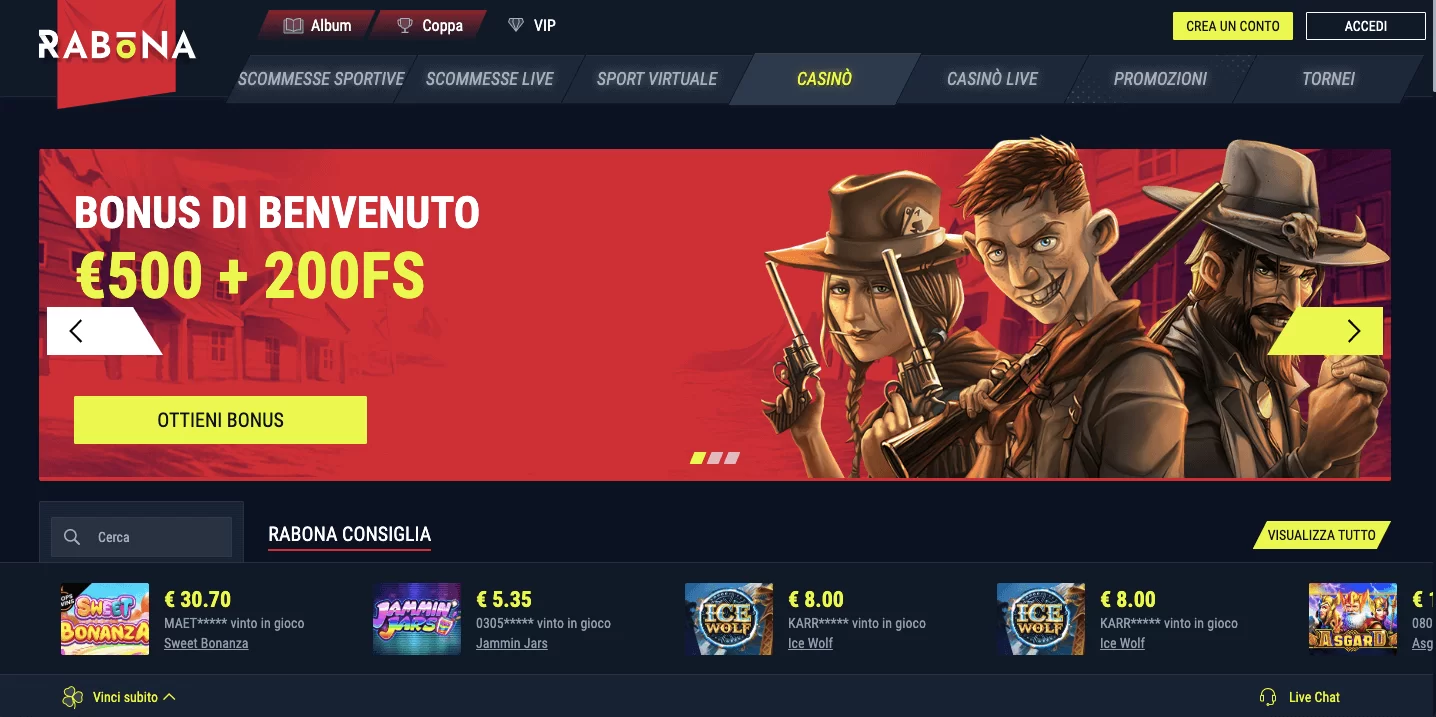 Come esempio di casinò online italiani e non su cui intrattenersi, con molteplici prodotti e recensito dagli esperti, c’è Rabona. Su questa piattaforma è possibile effettuare pagamenti veloci in diverse valute, tra cui l’Euro. È, inoltre, anche accessibile tramite dispositivi mobili.