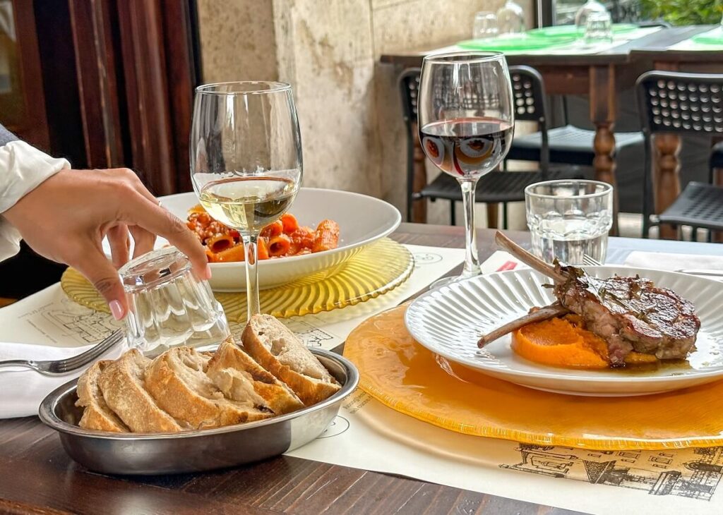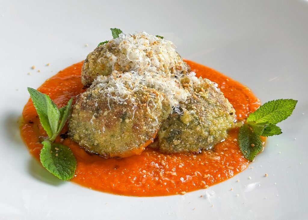 Il rispetto della tradizione si coniuga con sperimentazioni originali: provate i loro Fiori di zucca farciti con fiordilatte di Agerola ed alici del cantabrico fritti in tempura di riso, il Rigatone alla amatriciana, alla carbonara o alla gricia, i Ravioli artigianali, le Costine d’agnello fondenti con purè di patate dolci, o il Calamaro imbottito con verdure di stagione salsa al pecorino e polvere di pistacchio.