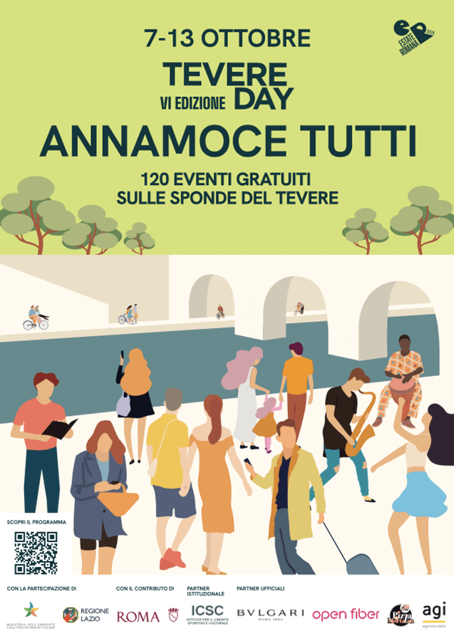 Tra gli eventi più attesi in programma le Lezioni di Ambiente, iniziative rivolte alle scuole di diverso grado per la sensibilizzazione sui temi della sostenibilità che si terranno dall’11 al 13 ottobre; e ancora la straordinaria apertura al pubblico, curata dal Municipio 1, del murale di Orfeo Tamburi intitolato Carnevale Romano al Palazzo dell’Anagrafe, a dimostrazione di quanto l’impegno culturale dell’associazione Tevere Day si spinga anche oltre il corso del fiume. A questo si aggiunge un’altra apertura straordinaria, quella dei siti archeologici inseriti nel complesso dell’Ospedale Fatebenefratelli dell’Isola Tiberina-Gemelli, tra cui il mai aperto al pubblico Tempio di Giove Giovario assieme ai Sacconi Rossi, al Refettorio, alla Chiesa di S. Govanni Calibita, alla Sala Capitolare.