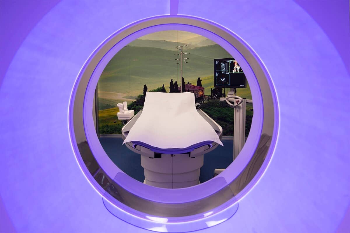 Physicians and patients agree on the many benefits of this scanner. For instance, up to 80% of radiation exposure is reduced. Faster execution and a high degree of precision and image resolution, both in 2D and 3D, are additional advantages. The high definition offered by this machine is useful when radiologists and other physicians need to study small anatomical parts, such as small vessels of the inner ear, and more complex structures, such as those in the cranial base or heart. This latest generation CT scanner can analyze an entire organ in one single rotation with maximum accuracy and speed: only one second for a chest CT scan and less than five seconds for a total body scan. And when it comes to Cardiac CT for example, doctors have access to one of the highest diagnostic quality standards available. Patients diagnosed with atrial fibrillation or a high or unstable heart rate also benefit from this degree of higher imaging.